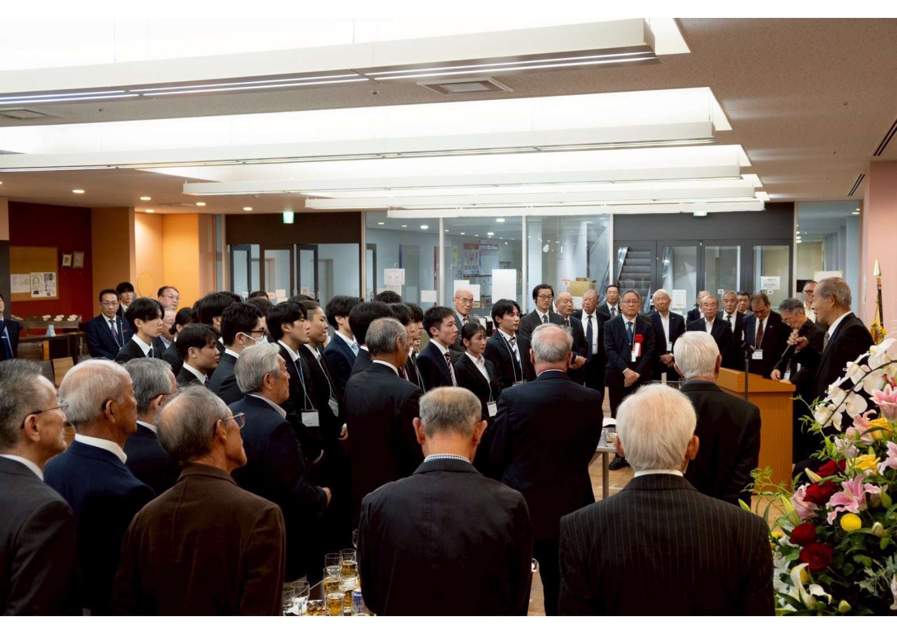 最後には、前男子主将の横田圭祐先輩から激励のお言葉をいただき、盛況のうちにお開きとなりました。- 四年生の先輩方全員にお越しいただいて、食事をしながら部活動での思い出など他愛のない話に花を咲かせました。