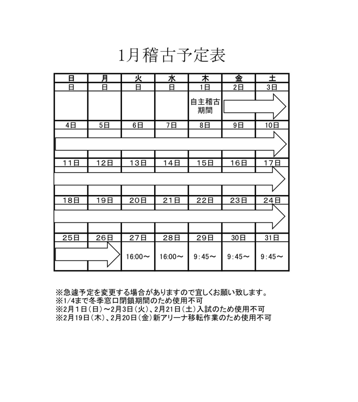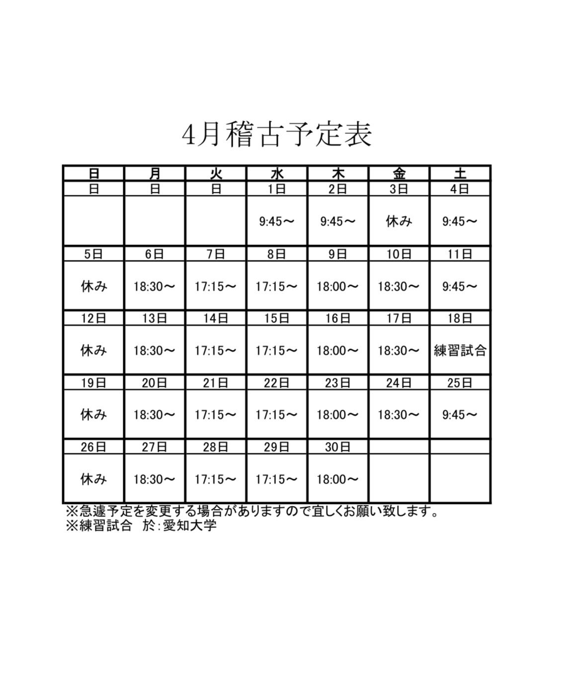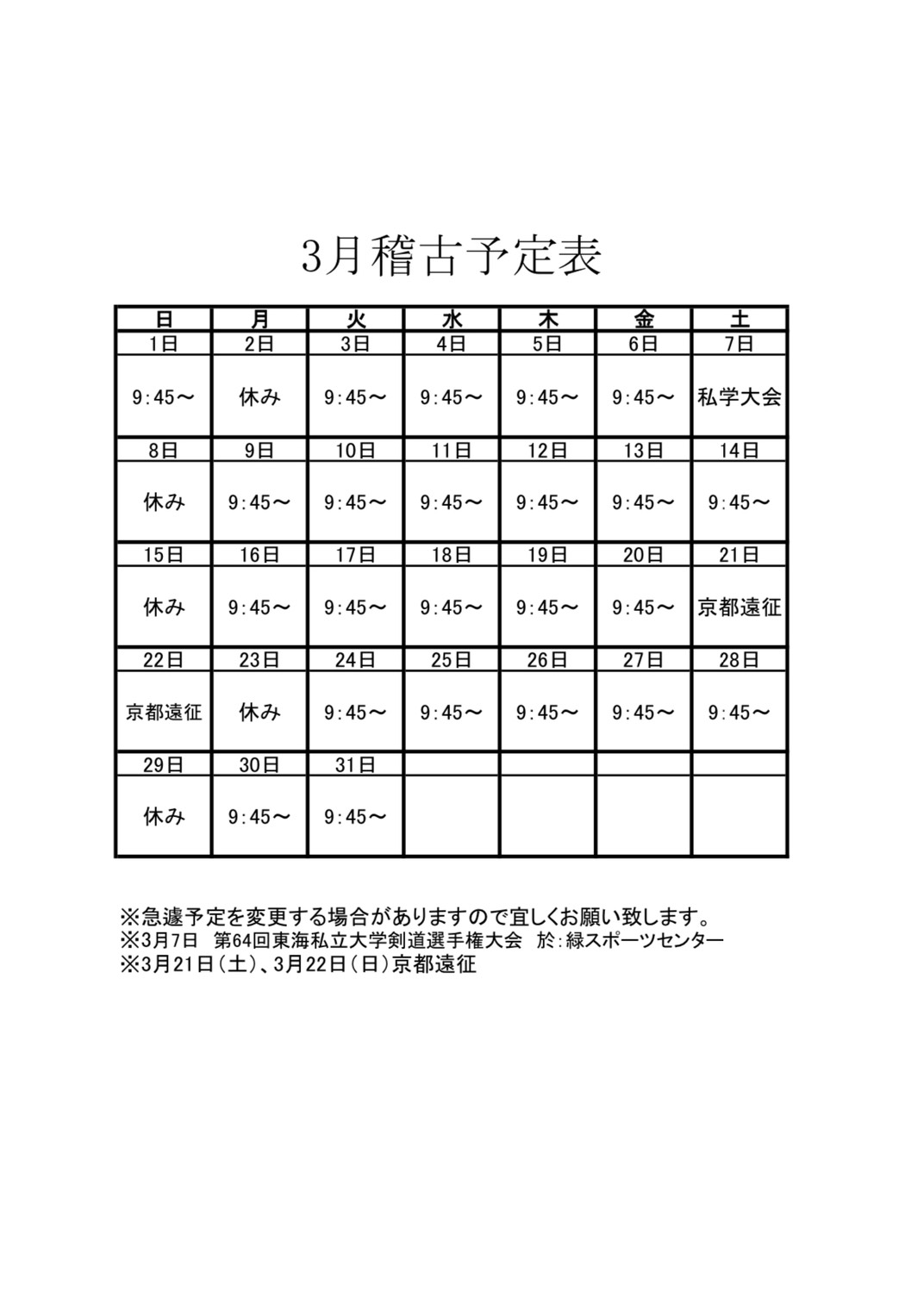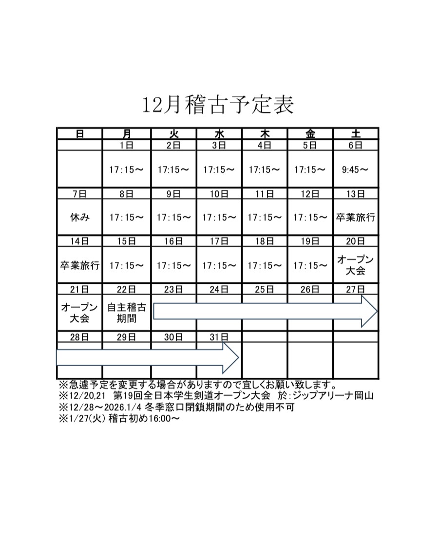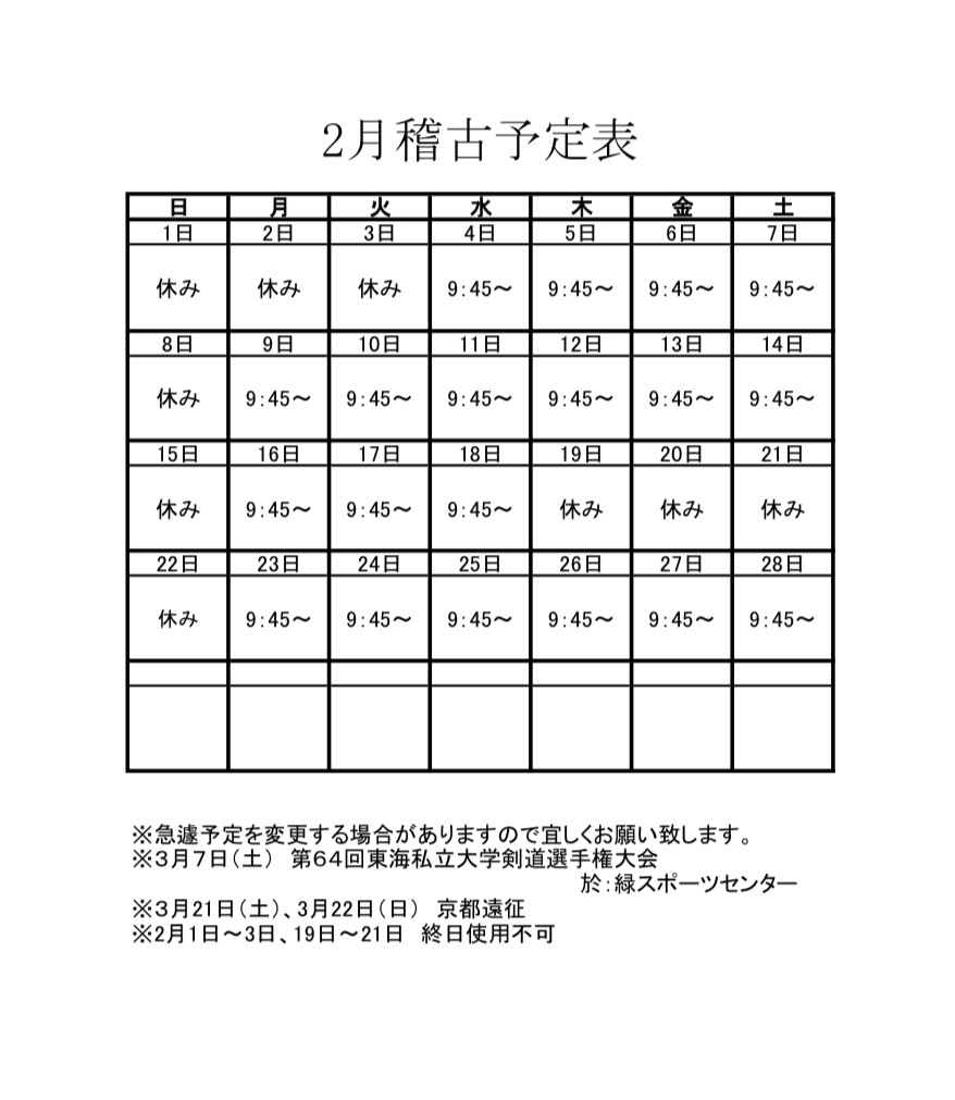 稽古・大会等 予定